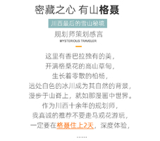 我们这个行程和市面上常见的格聂不一样,我们发格聂差不多10年了,从最开始的格聂C线徒步,到现在交通便利后的格聂旅行,我们一直秉承小众体验的旅行方式,我们是真看不上那种传统5天穿越线路,太累,太不值得,格聂其实很早以前就是户外人心中的圣地,如果只是坐车走马观花那多没意思,每年的5月底到678月,格聂神山周边的山脊草甸上开满了格桑花,背景雪山,在花海中徒步,是一种极致的体验。在我们的格聂核心区,我们的全职驻点摄影领队随时待命,让你的旅行无忧,我们在格聂连住二天,让你真正的有时间玩格聂,而不是路过格聂!