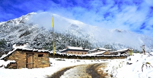 子梅村:群山环抱中,一条小径蜿蜒而来,路途中点缀着黄白色建筑的地方,就是子梅村,它深嵌在贡嘎山西坡的山谷中。由康定城区到新都桥镇,再途经沙德镇到贡嘎山乡,从海拔4550米的子梅垭口往下,道路经过陡峭的42个回头弯,一个只有十户人家的小村庄——子梅村,在此遗世而立。这里,距离康定城区200余公里,有雪山、森林、草甸和湖泊,是贡嘎山国家级自然保护区核心的地域